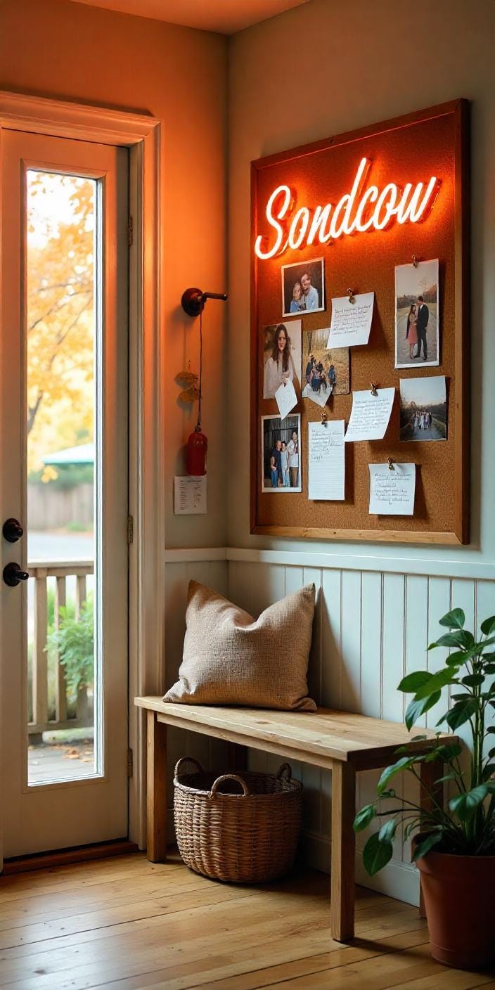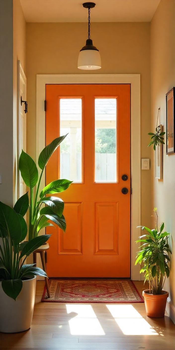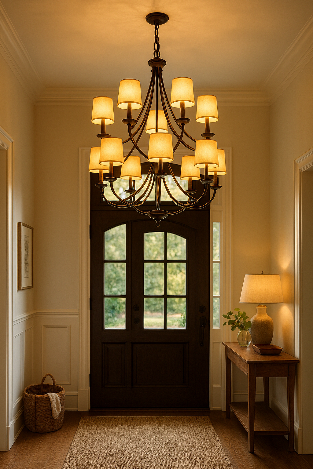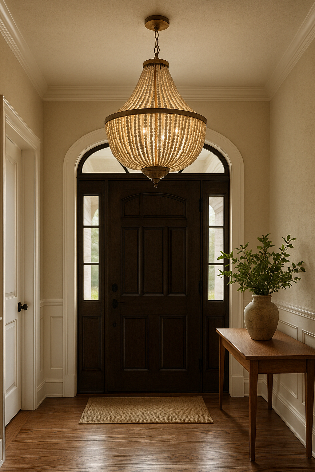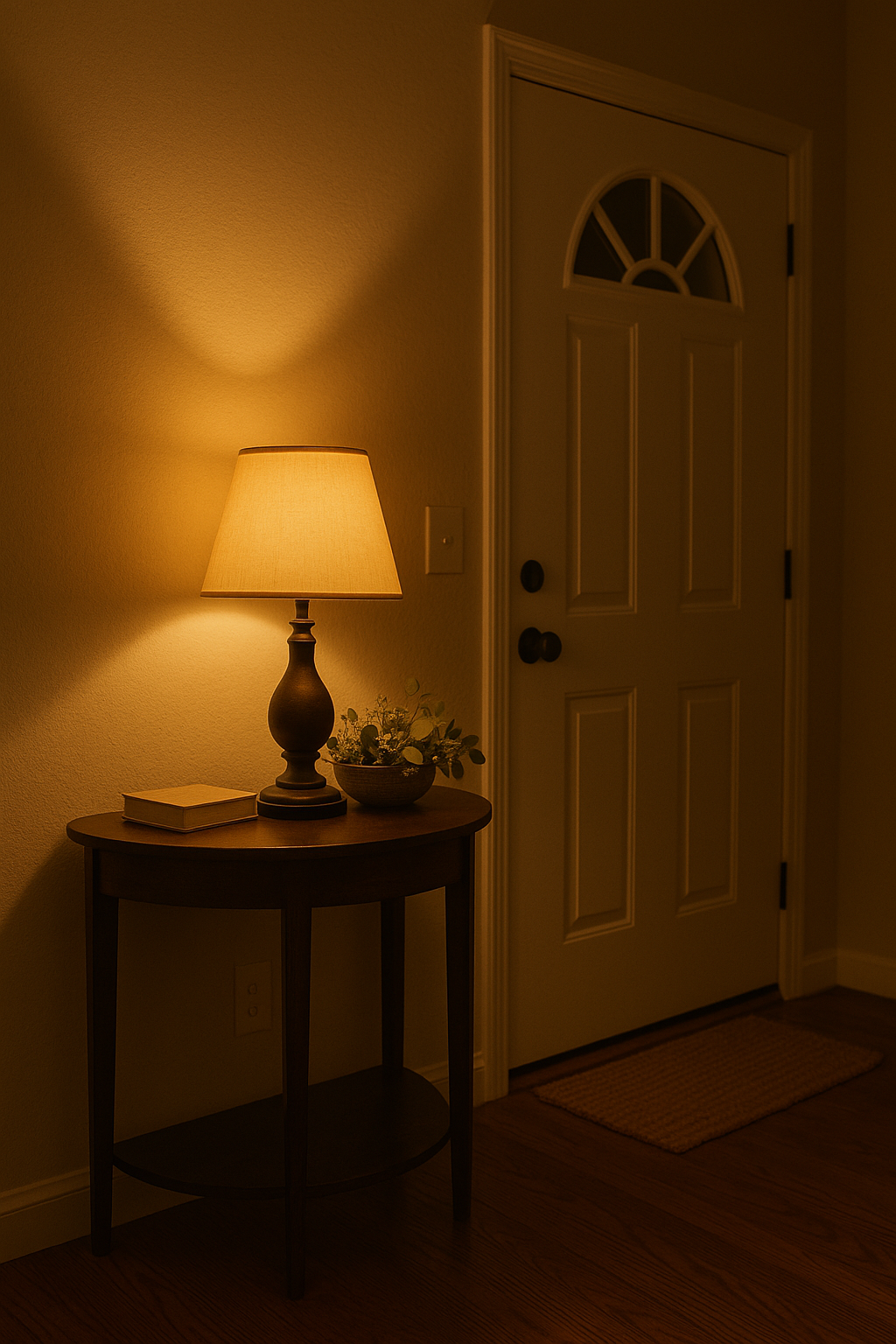 - Warm entryway glow: A small table lamp with a warm-toned bulb