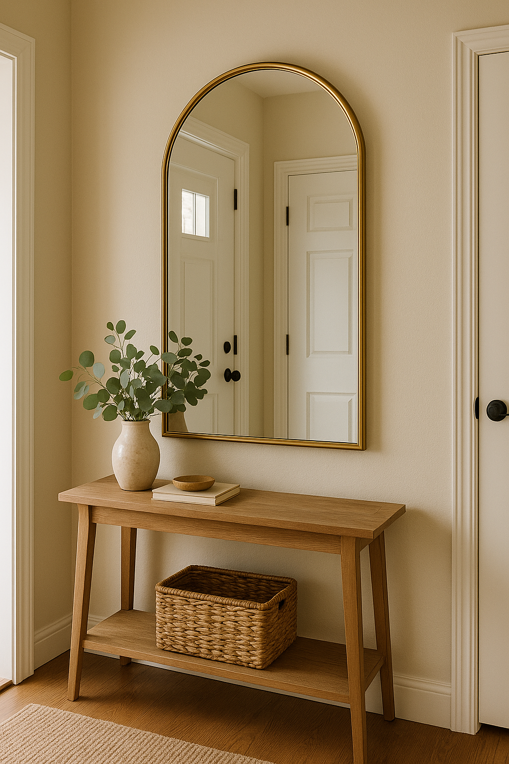 🪞 Go for a round mirror for a soft, welcoming feel, or a vintage shape for charm.