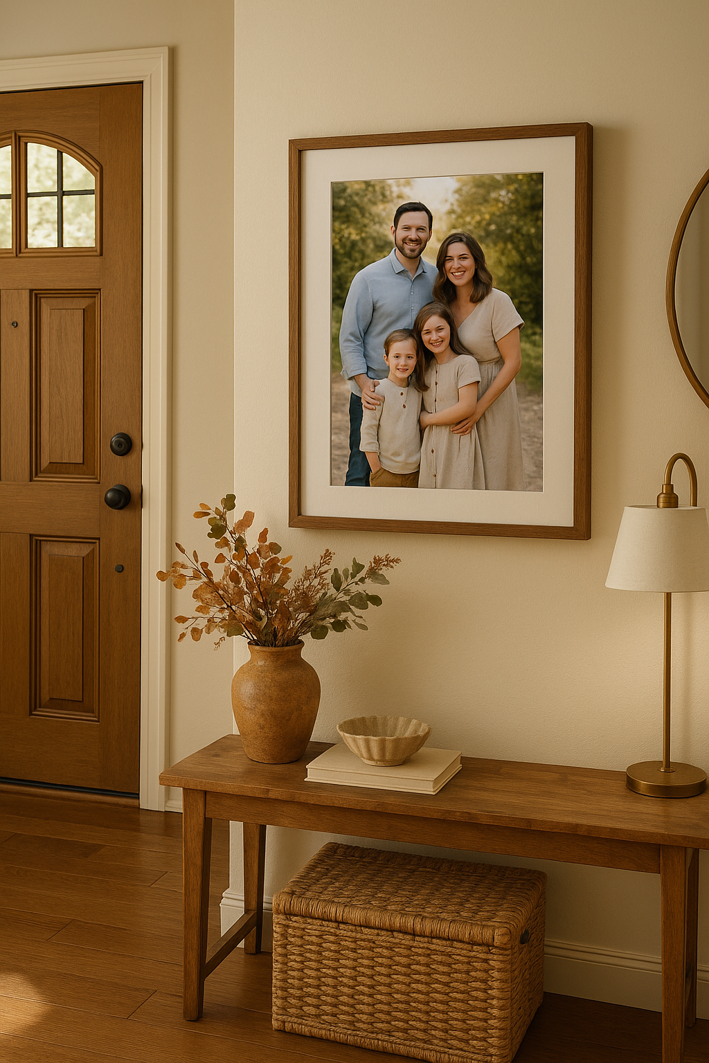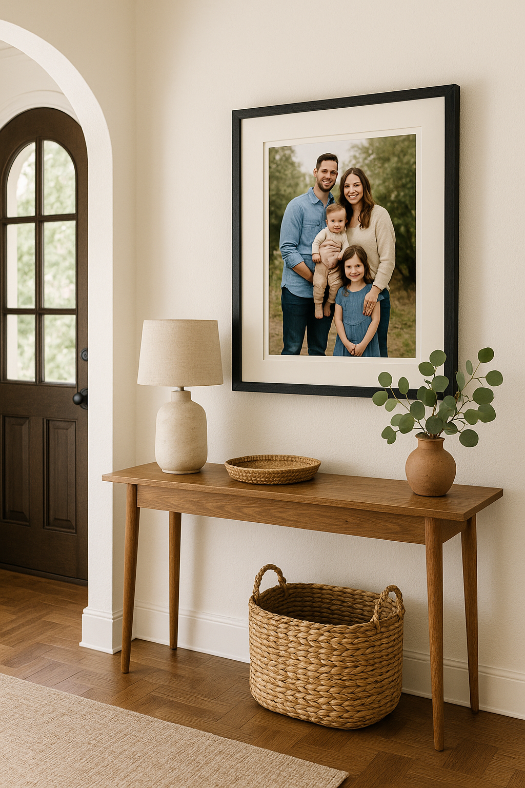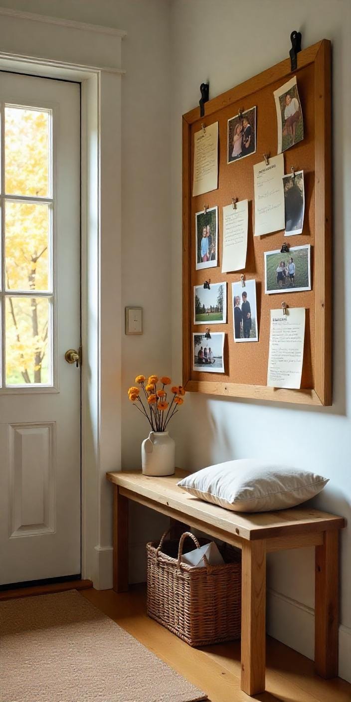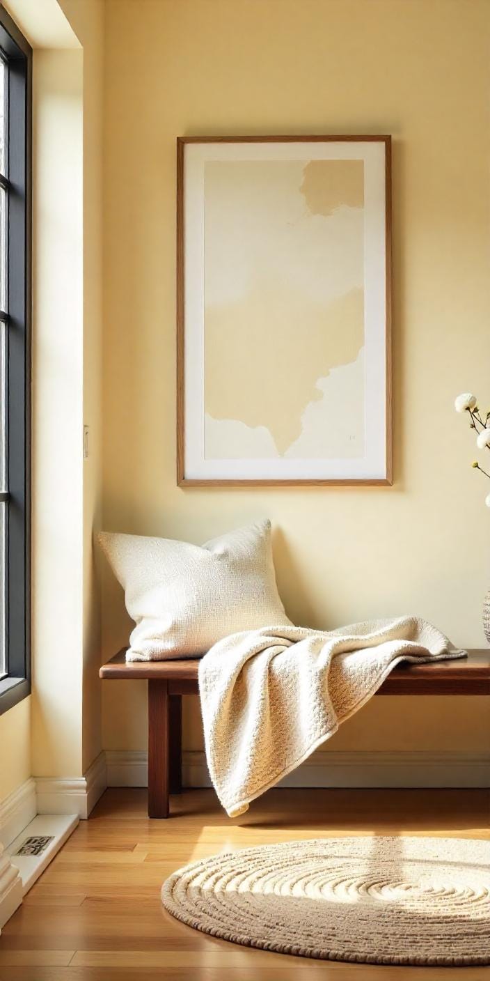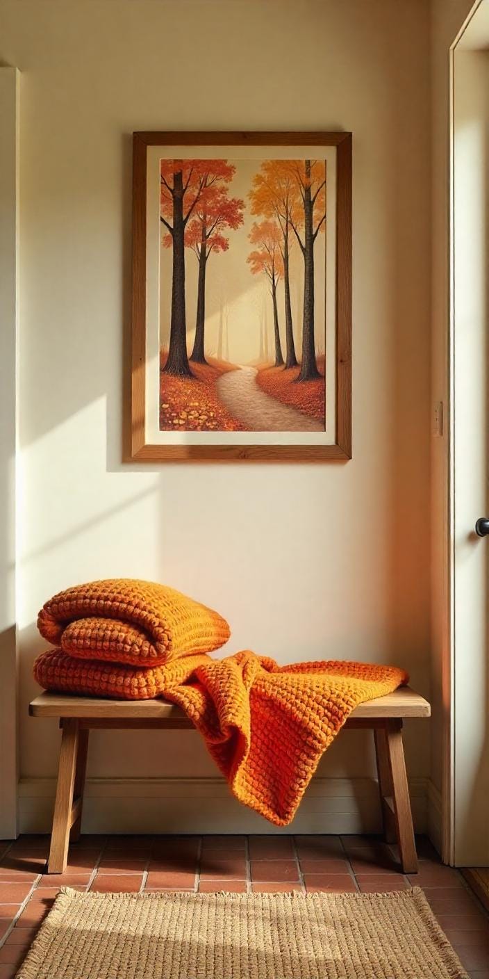 - Textured entryway design: A chunky knit throw or wood-framed artwork