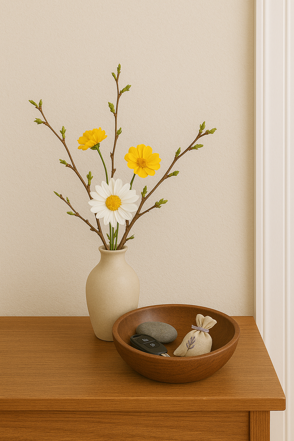 - Foraged Beauty: A simple vase with a few freshly cut flowers from your garden or even interesting branches with budding leaves can bring seasonal beauty indoors with minimal effort.